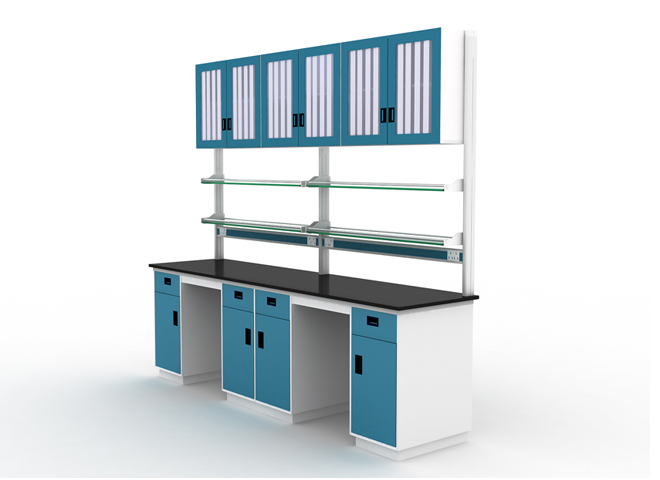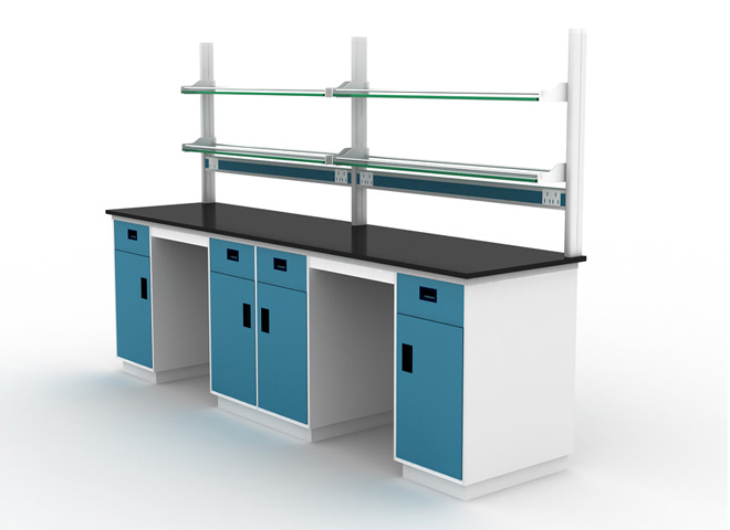 前后梁:1.8*30.60㎜优质方型钢材,连接处由专用连接件(模具开发)连接,表面高压EPOXY静电粉沫喷涂。在后梁上安装实验室专用的可移动滑轨,与柜体相结合,柜体可根据实验室工作者的需求任意滑动,此结构科学合理、稳定性强、方便实用。